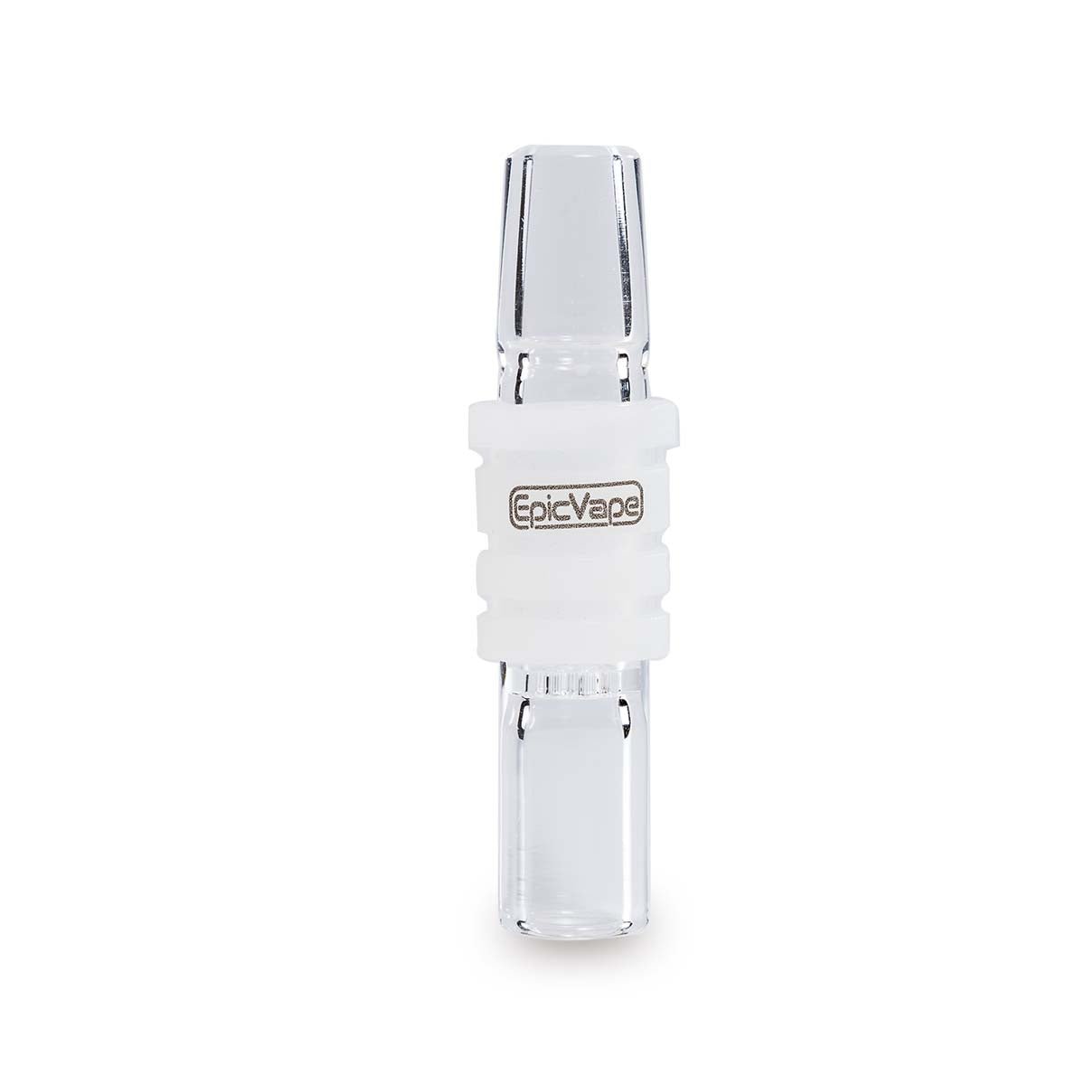 The EpicVape E-Nano Fixed Screen GonG Stem from Epickai connects your E-Nano log vaporizer to your favorite glass piece. This stem comes with a fixed glass screen for smaller sized loads and provides a pure, all glass vapor path. Comes with a silicone heat guard for safe handling that also keeps the stem from rolling around. E-Nano vapor is more comfortable through water, especially at higher temperatures. Available in 14mm and 18mm.