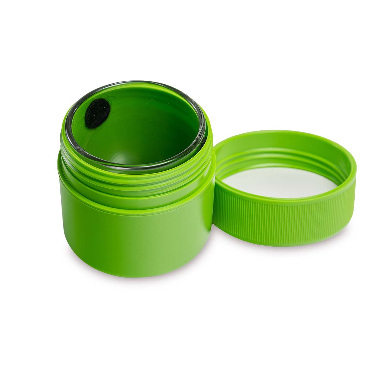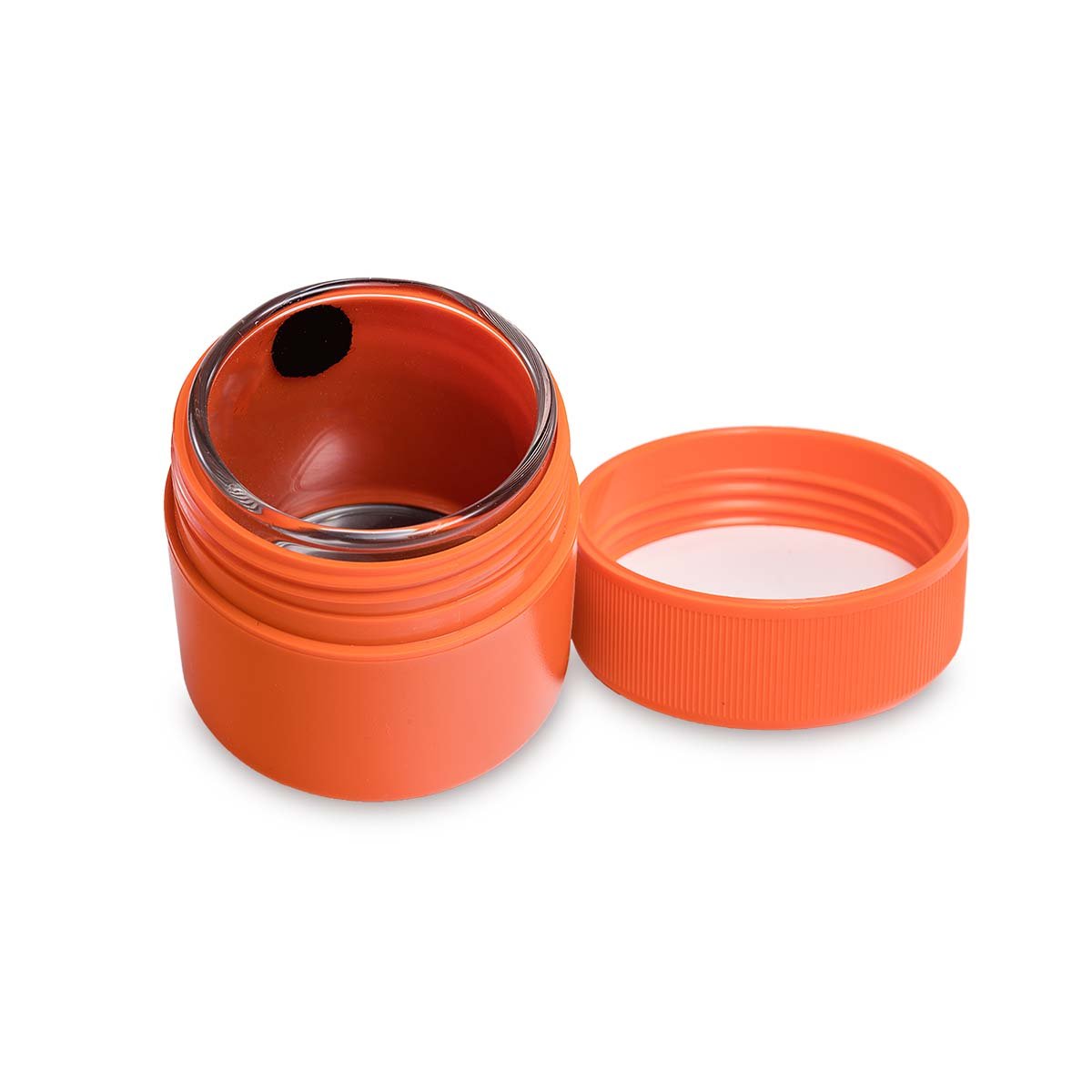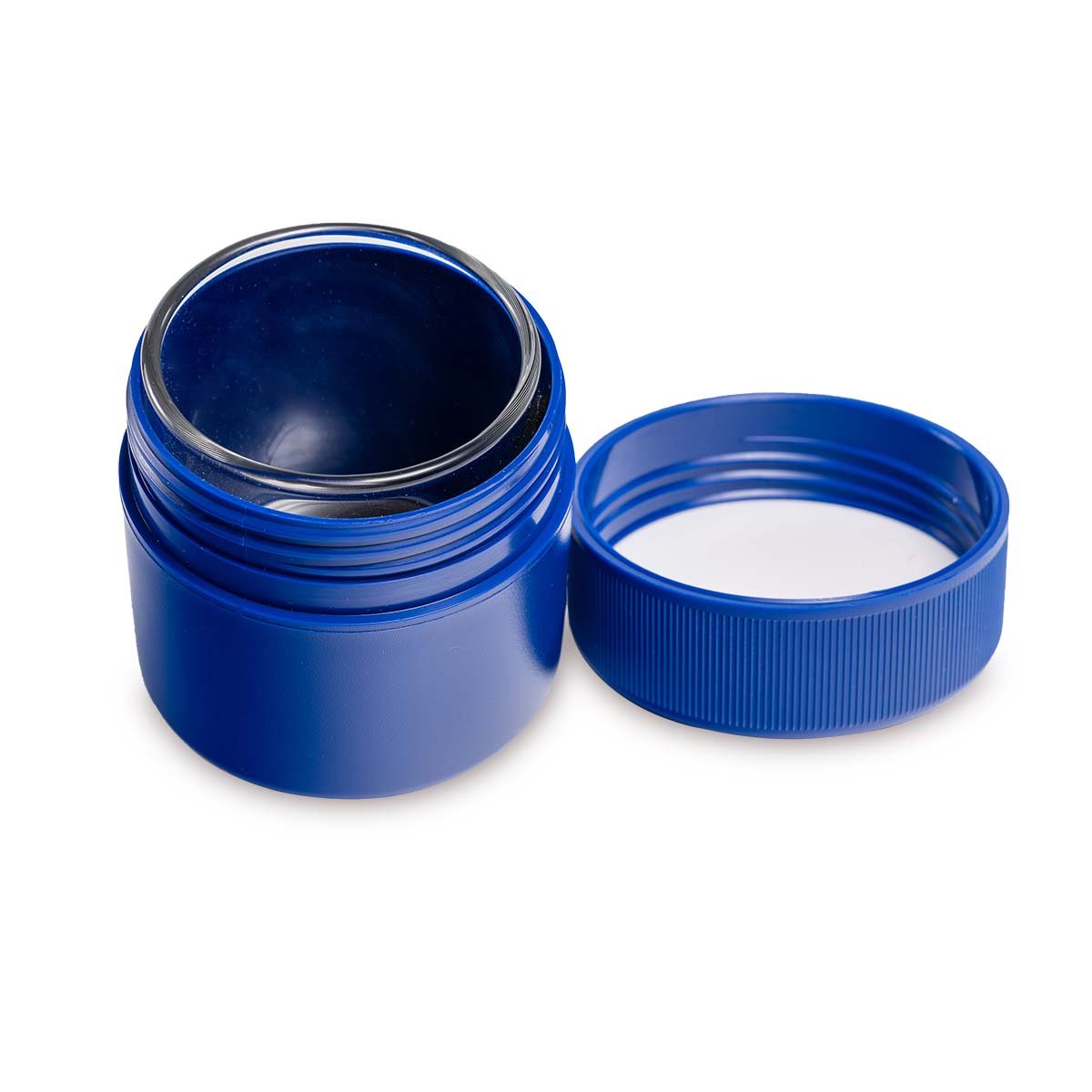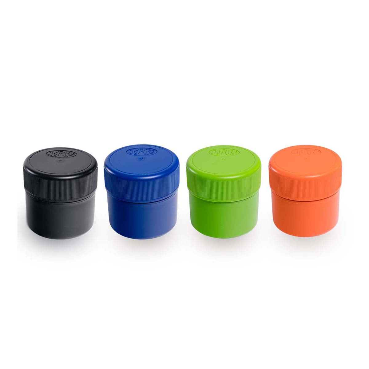 The JyARz Satchmo is one of the larger containers in the lineup. Each one is 2½” tall with the same diameter, with a volume of three fluid ounces, or roughly seven grams of dry herbs. Available in a Black, Blue, Green and Orange.