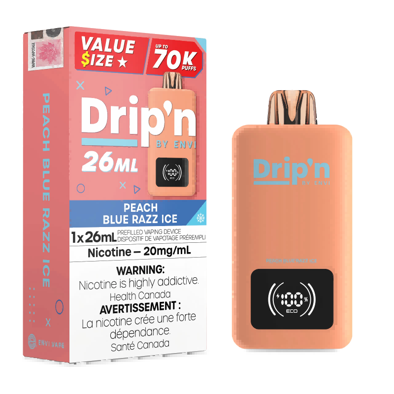 1× Peach Blue Razz Ice Envi Drip’n 26 mL Disposable Vape