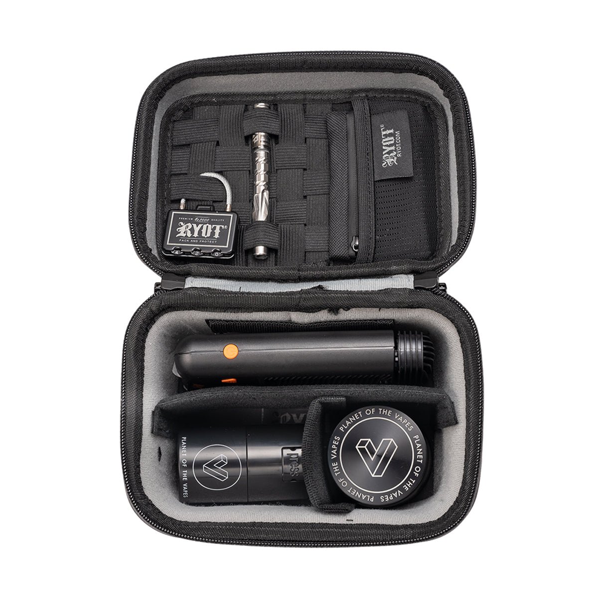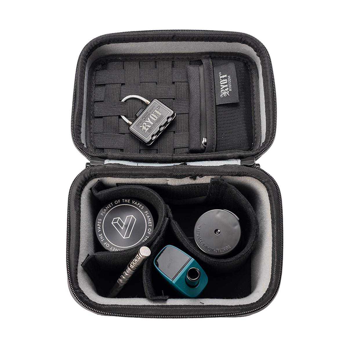 The Safe Case from RYOT is a full-size travel case for all of your vaping needs. This hardshell case comes with multiple dividers and elastic straps to secure everything you need to take your sessions on the go.