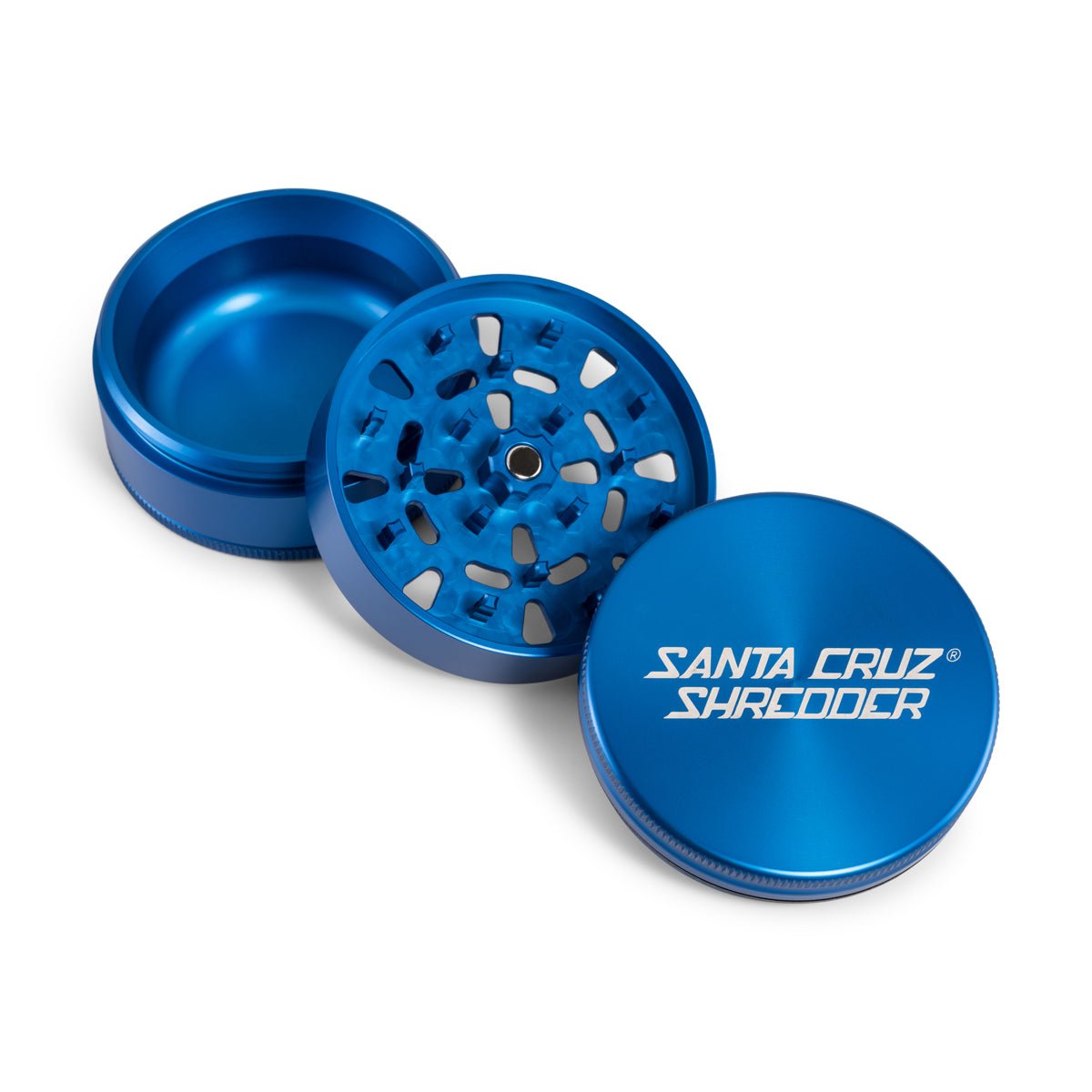 The Santa Cruz Shredder is made in the USA, constructed out of aerospace grade aluminum and manufactured using CNC technology. The grinders are anodized which creates a harder surface which is resistant to scratches, thread damage and tooth damage.