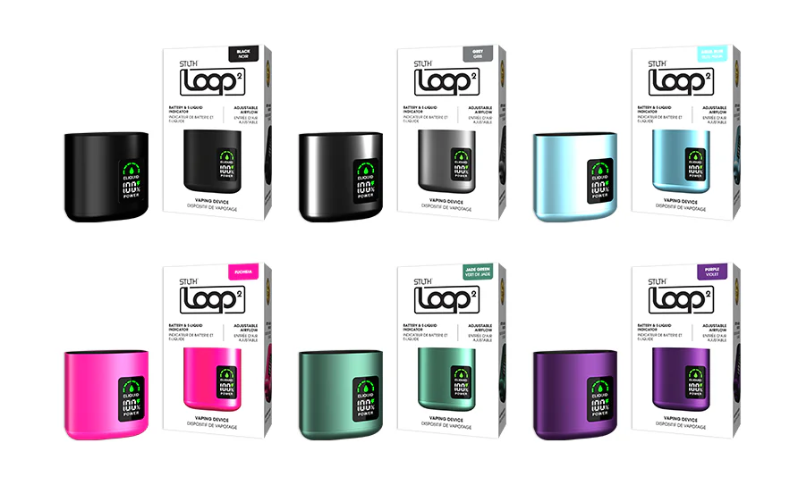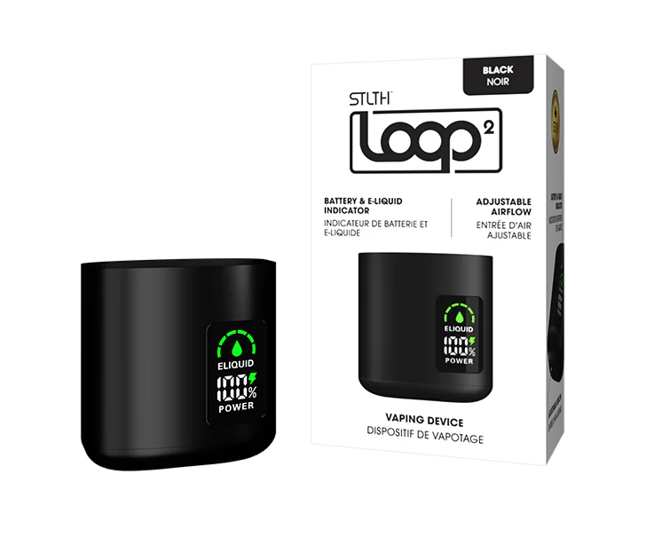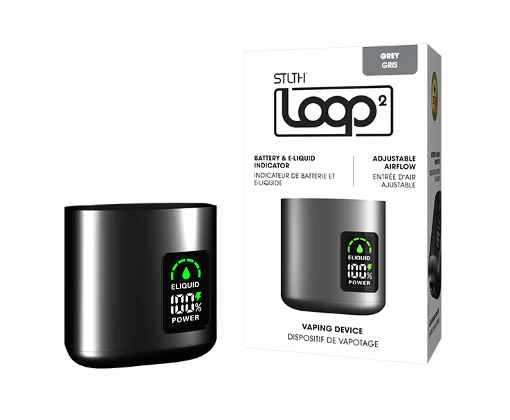 The STLTH LOOP 2 Device gives you an 850 mAh battery capacity, accurate airflow adjustment, a sleekbrushed metal finish and an LED Display Screen with real-time Battery and E-liquid Indicators. USB Type-C charging.